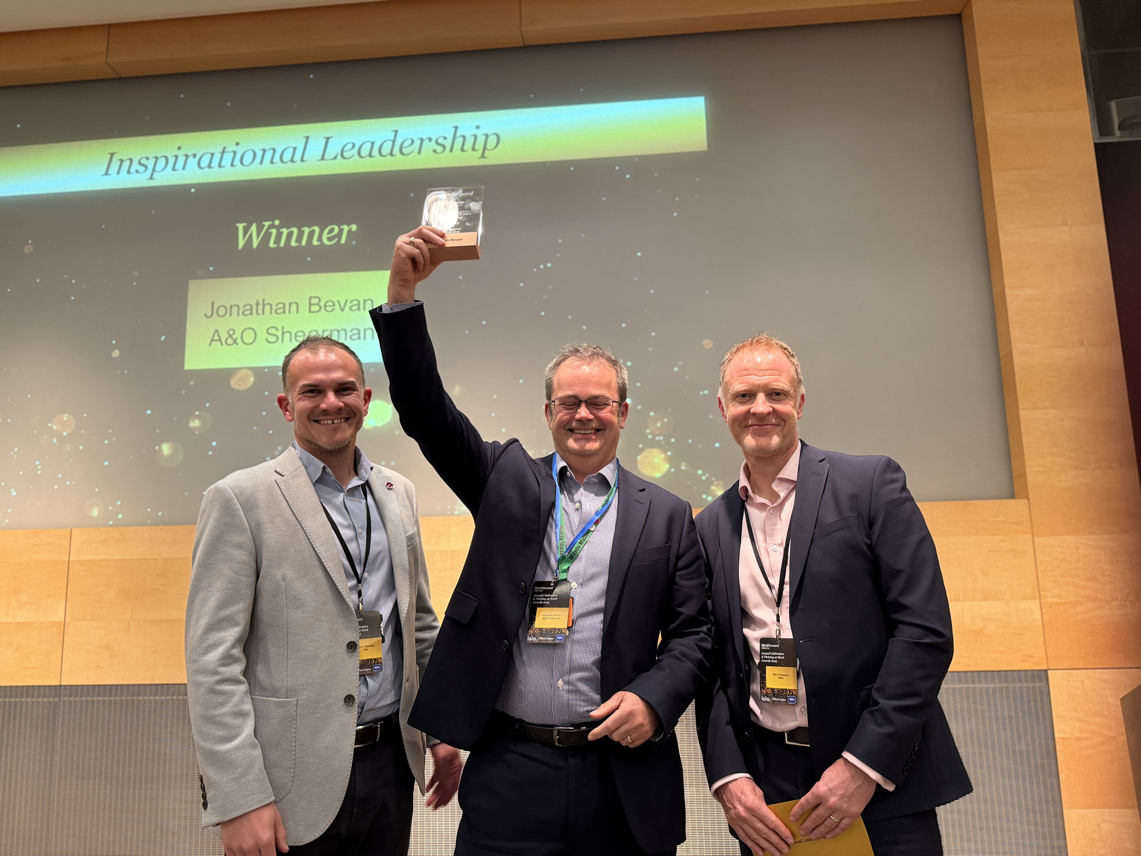 Jon Bevan, UK Chief Operations Partner and Partner within A&O Shearman’s ENRI practice, won MindForward Alliance’s Thriving At Work Award for Inspirational Leadership. Jon has shown an unwavering commitment to creating a sustainable and healthy work environment within an industry known for its high pressure and demanding expectations.